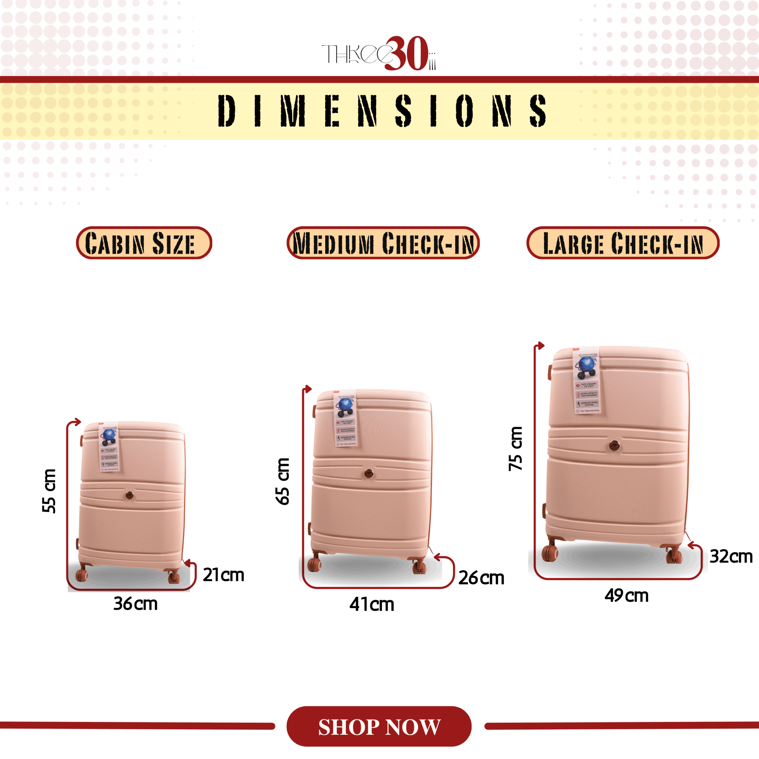 20” (Cabin), 24” (Medium), 28” (Large), Set of 3