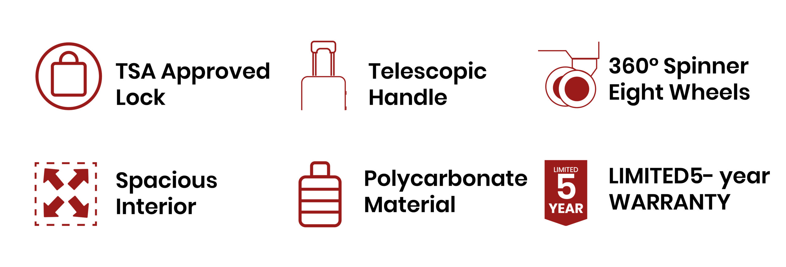360° easy-glide spinner wheels provide smooth and stable maneuverability on all surfaces