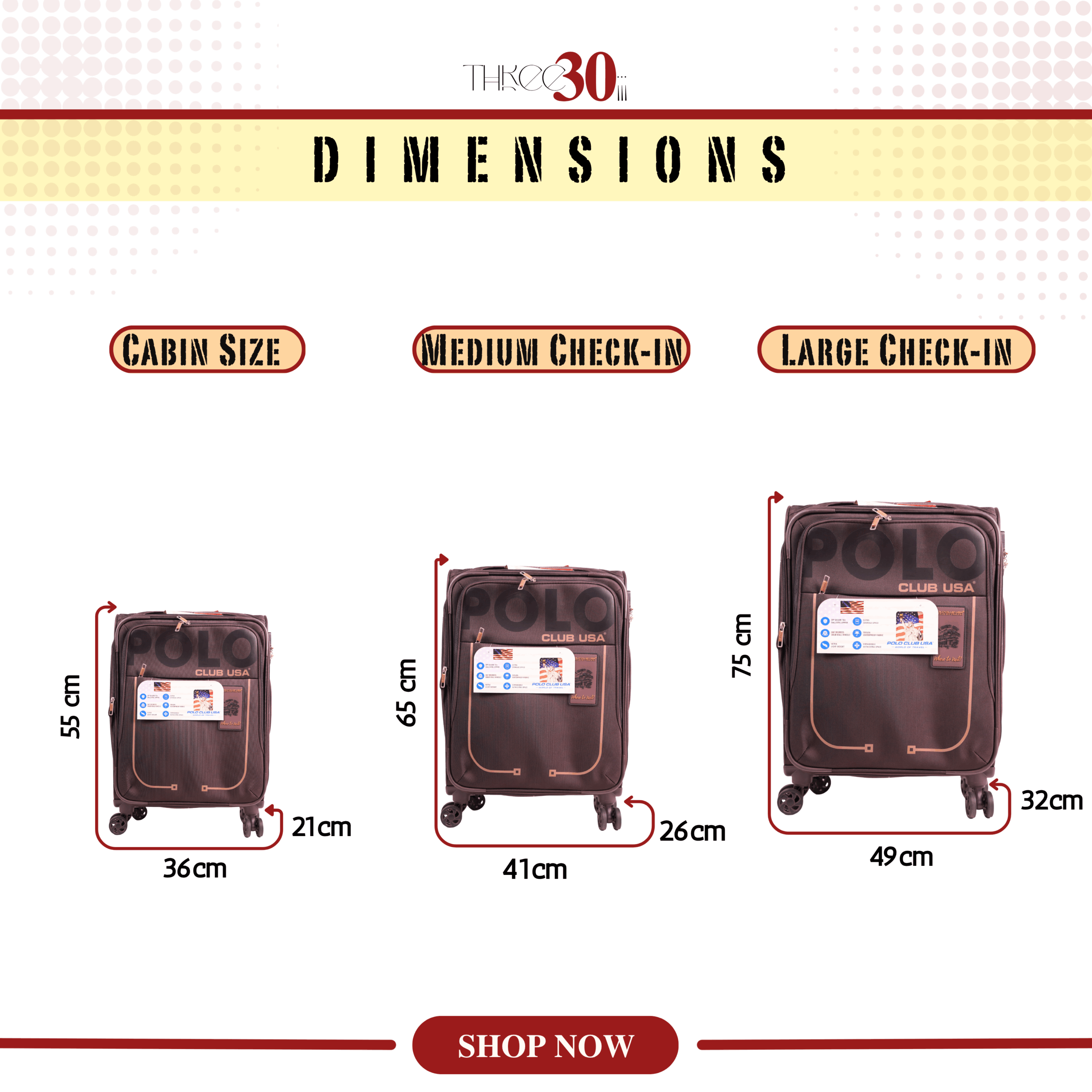 20” (Cabin), 24” (Medium), 28” (Large), Set of 3
